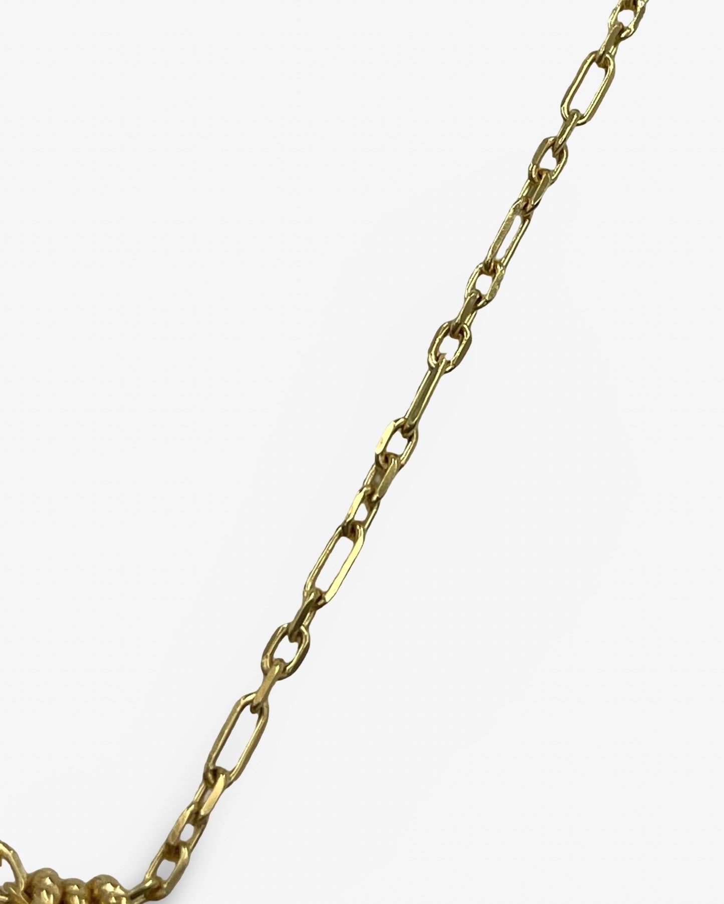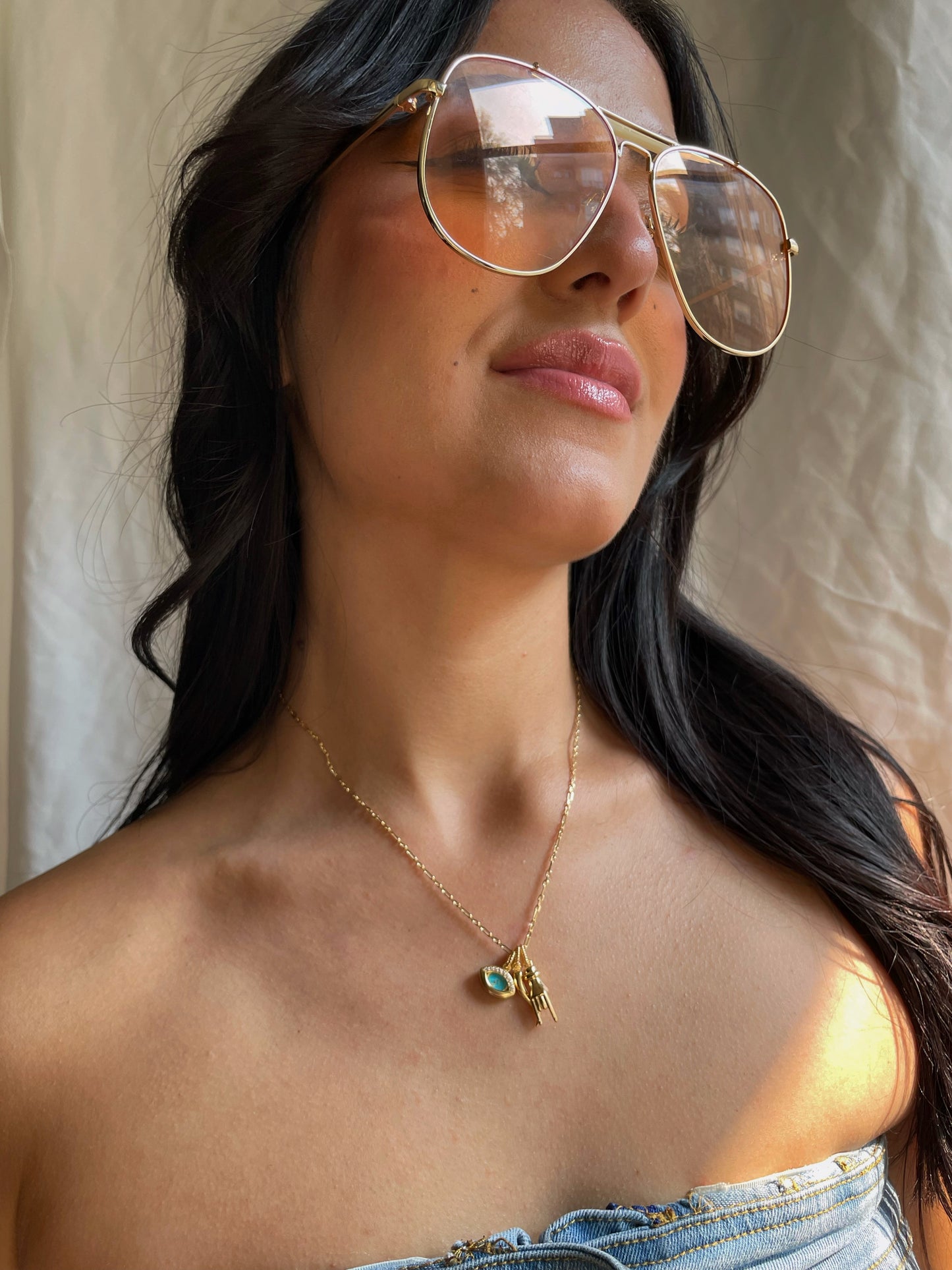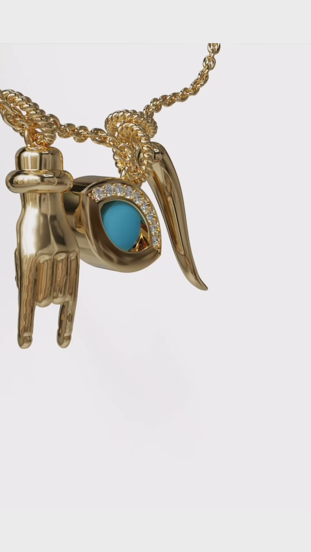 A unique square link chain, with the highly protective Corno, Mano Cornuta and Evil eye charms are included in this piece for triple protection. A European classic inspired by our Founders, Nonna - this is triple protection with an absolute twist.