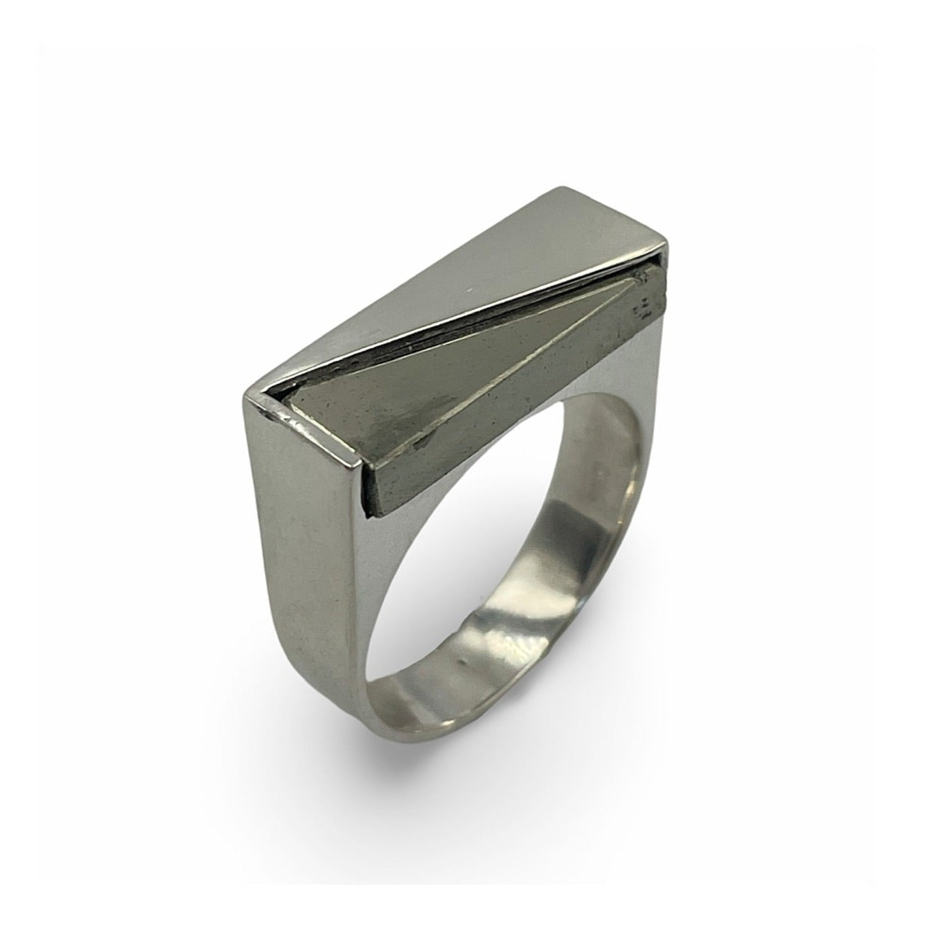 Who says you can’t have the best of both worlds? The balance ring show cases a split design with metal covering half the black onyx stone. Hand carved and hand set, this ring is an accent piece to an already handsome wardrobe. Make a statement with the balance of metal and stone.
