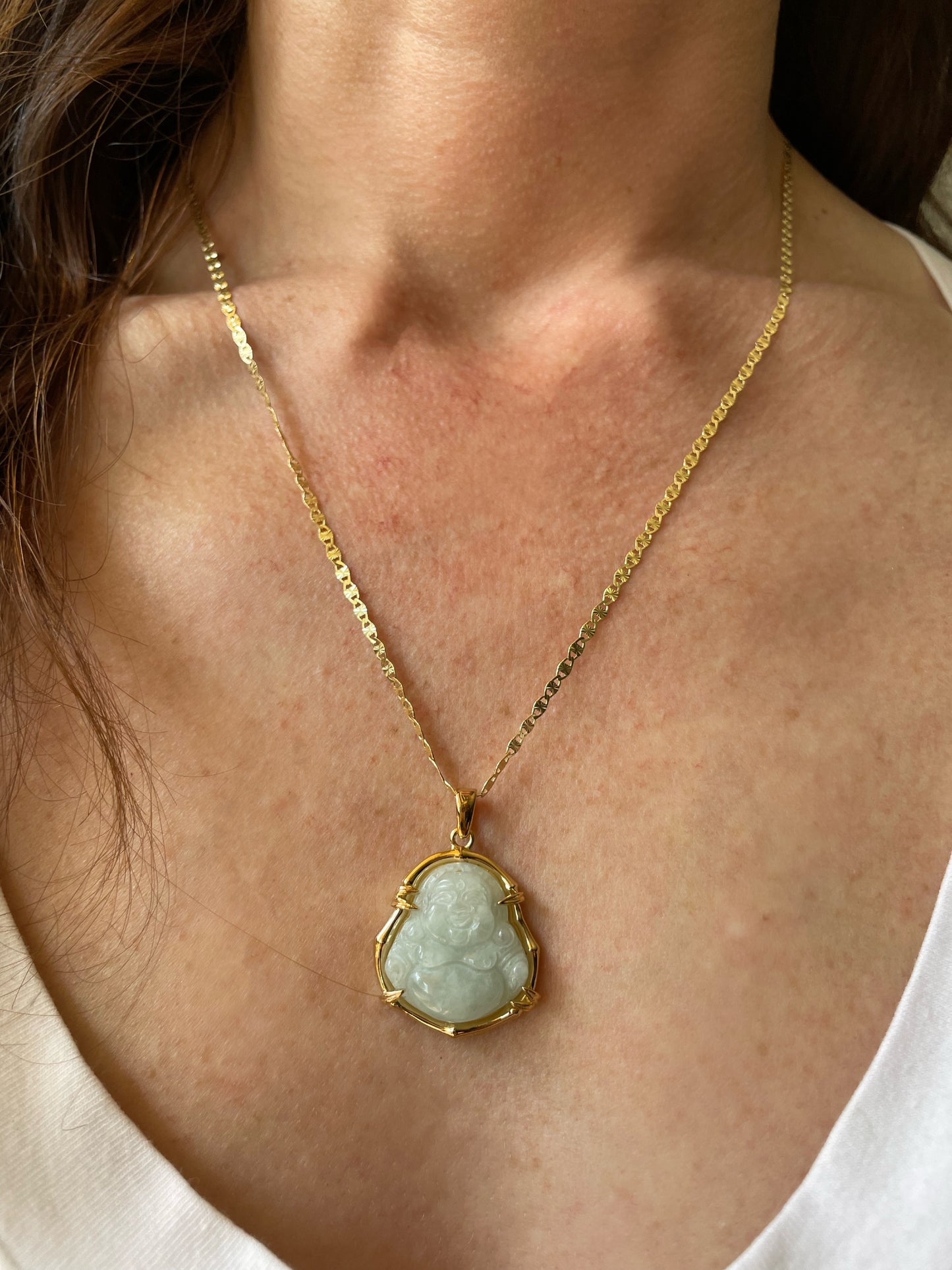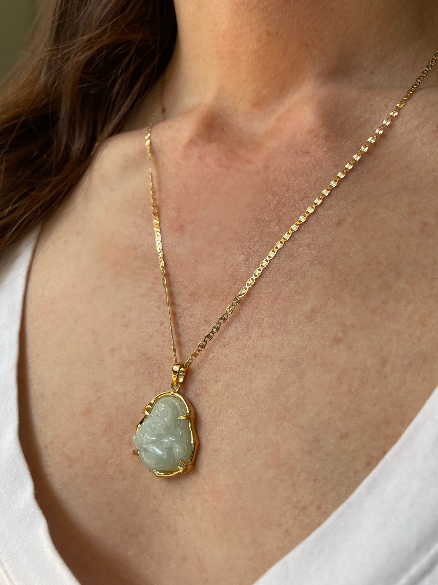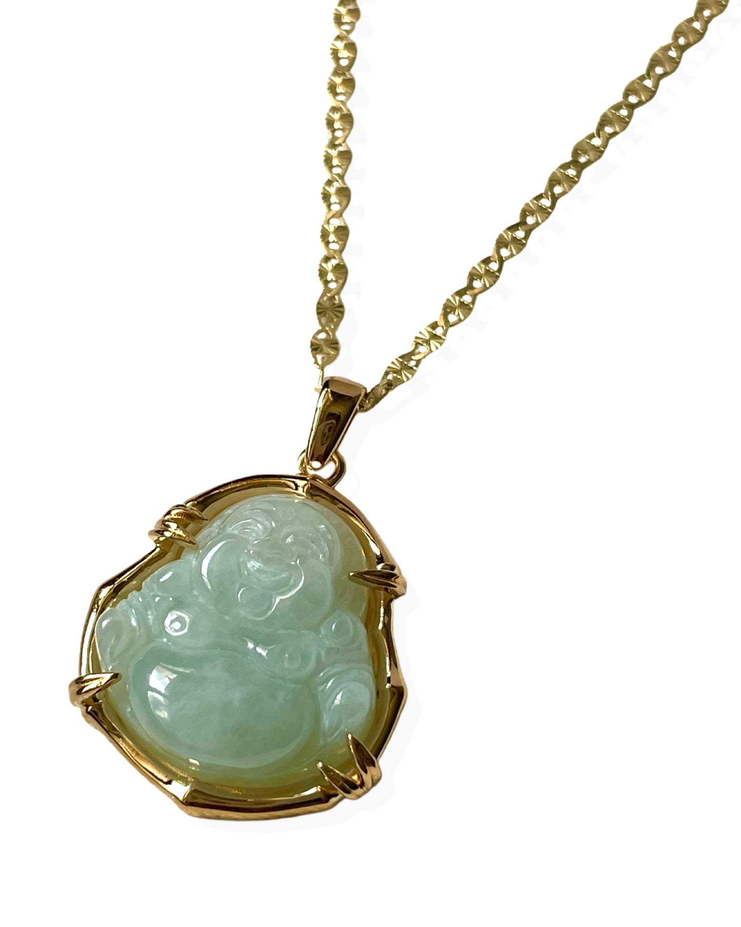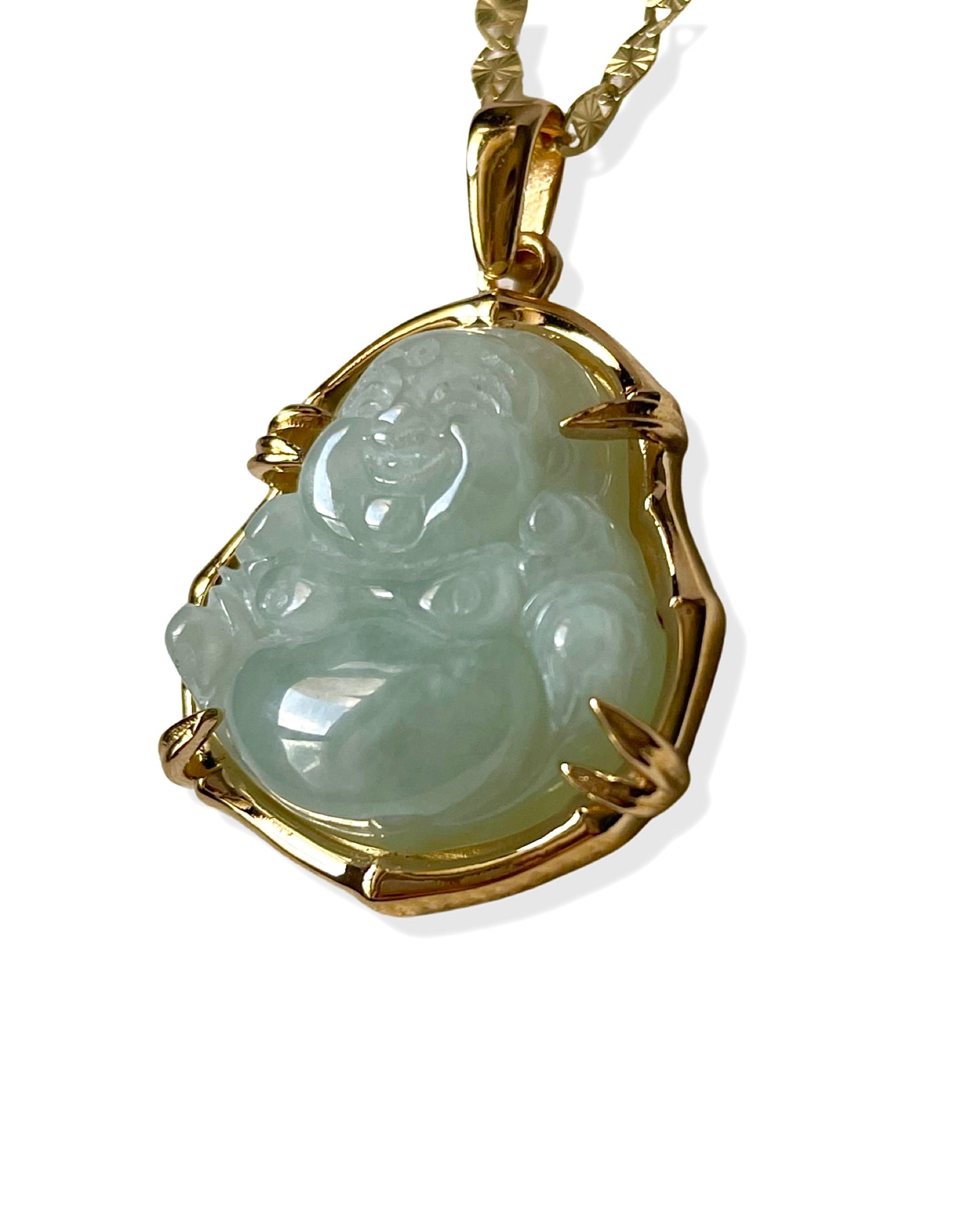 Bamboo is an ancient spiritual symbol for flexibility, endurance, peace, and good luck. The complexities of jade will illuminate your soul and keep your spirit strong. Buddha is a sacred being, God and symbol that beacons peace and enlightenment to all of its wearers. Allow this piece to offer the streams of goodness to you in all ways.