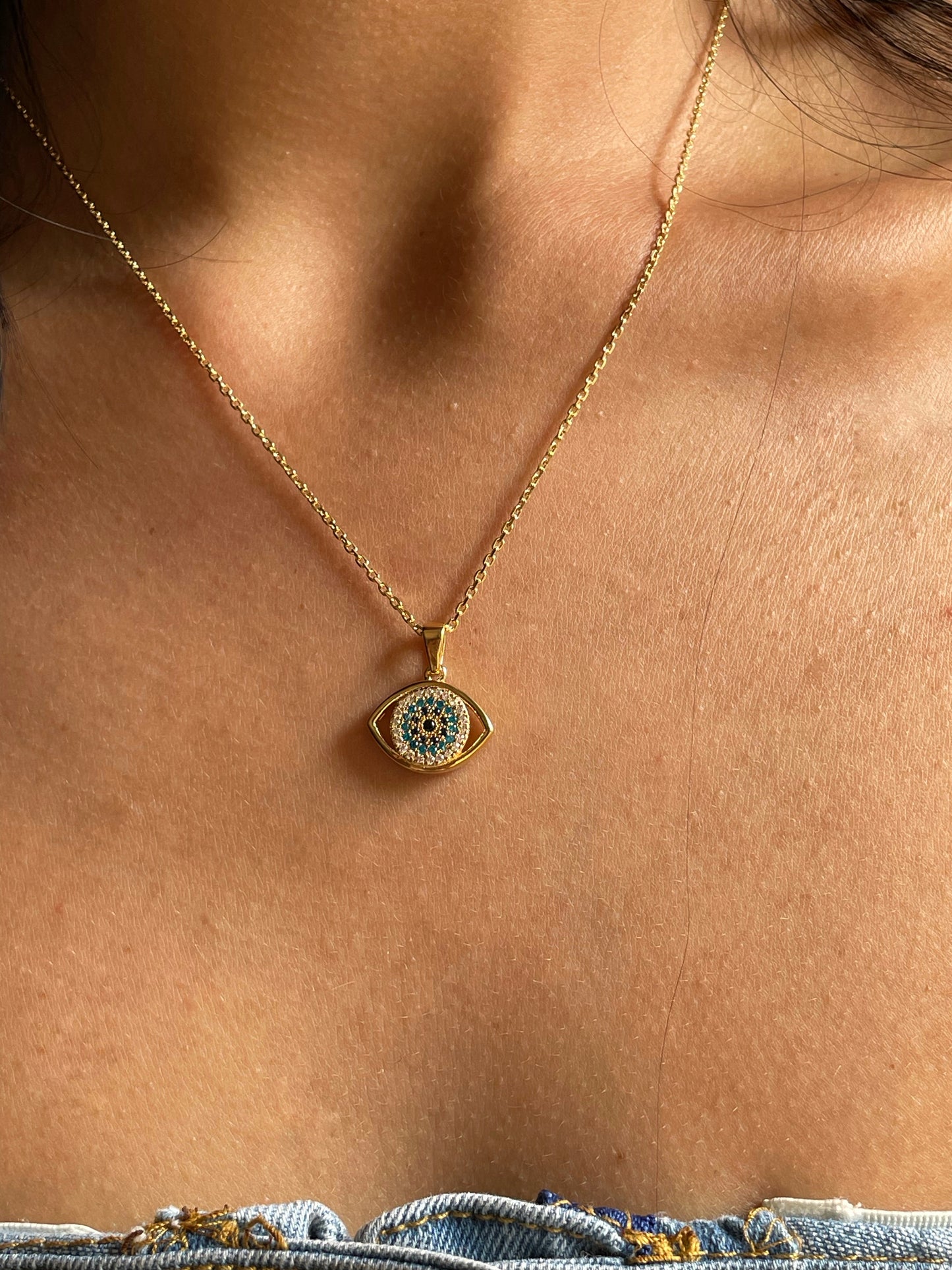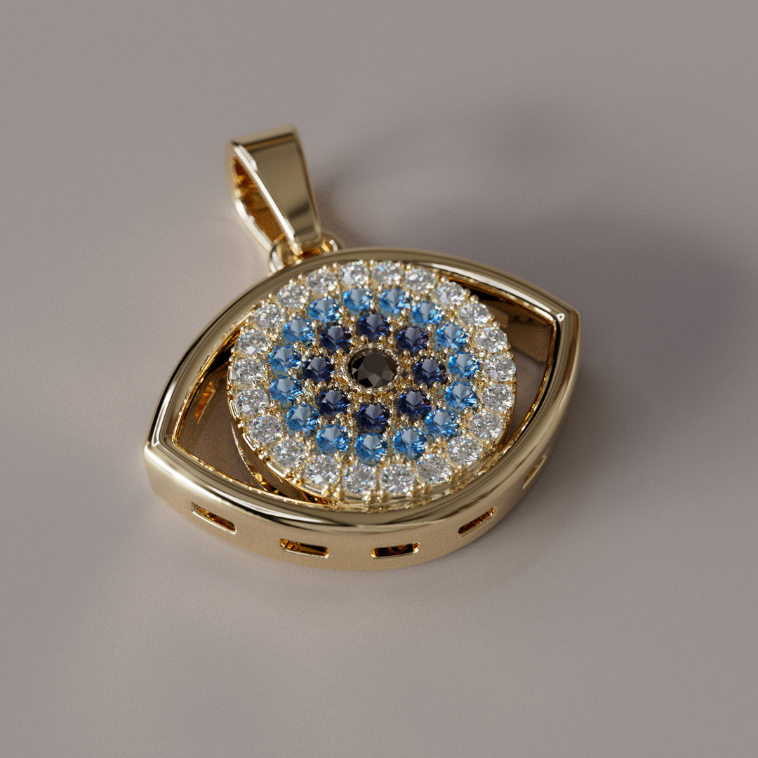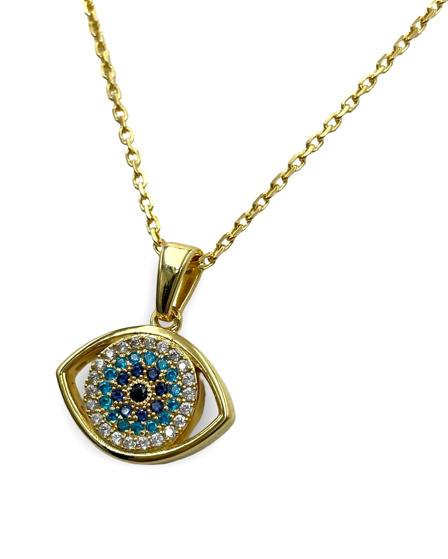 A unique multi link style chains coupled with an evil eye that has a hidden message on the back. The original message adorned in Greek lettering says “Jesus Christ conquers all”.