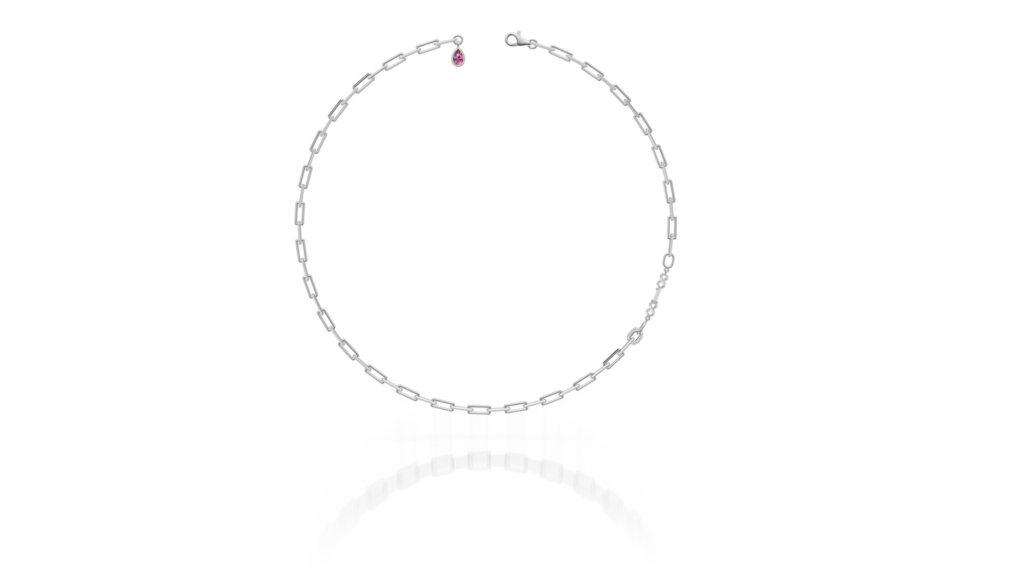 The Divinely aligned necklace is a 4.3mm Paperclip Chain 20 inch standard length - adjustable, available in Vermeil (over .925 available) Or Solid Sterling .925 Pavé mini link Genuine pink tourmaline drop at back of chain. View full product details and empowerment here.