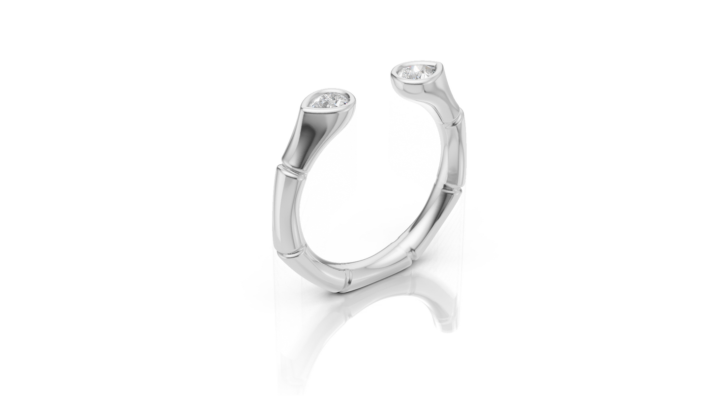Each piece is designed with soft, sculptural lines that echo organic bamboo segments, creating a look that feels effortless yet intentional. Lightweight, modern, and easy to layer, these pieces are made to move with you — from everyday wear to elevated moments. With a focus on hidden details, negative space, this collection screams unique!
